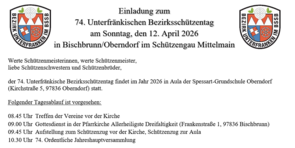 Einladung zum 74. Bezirksschützentag in Bischbrunn/Oberndorf am 12. April 2026